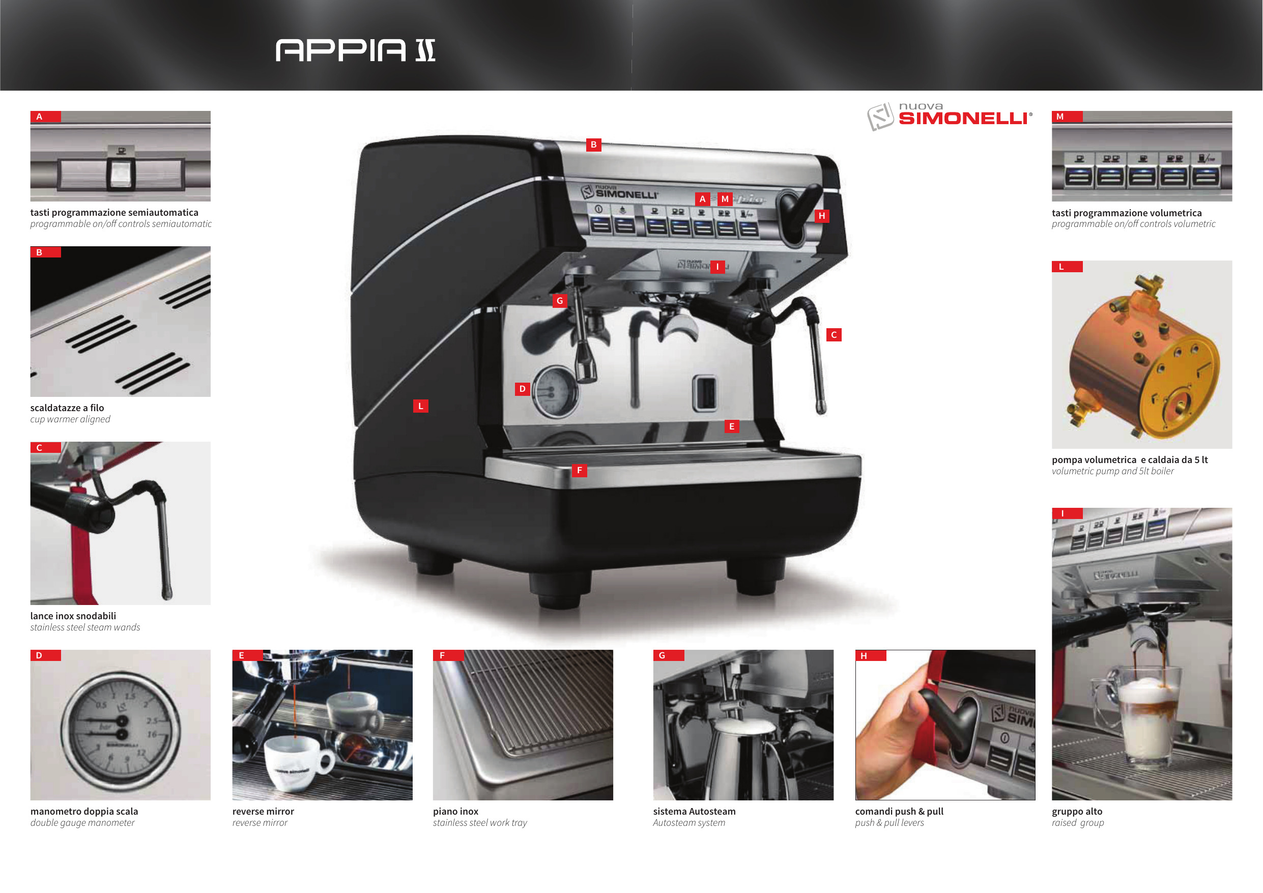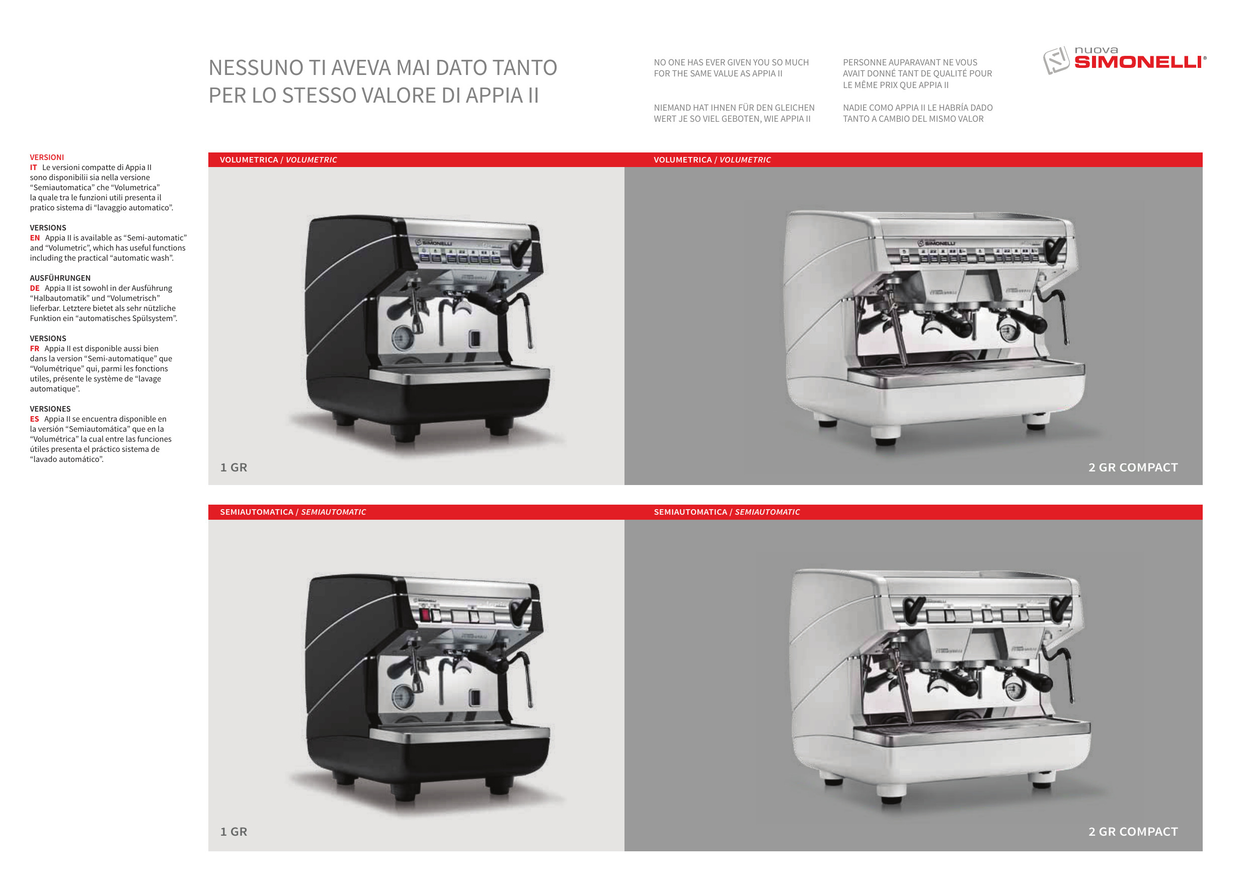 Con solo 40 cm, el grupo Appia II 1 incorpora la innovación y la tecnología de Nuova Simonelli para garantizar un excelente rendimiento.