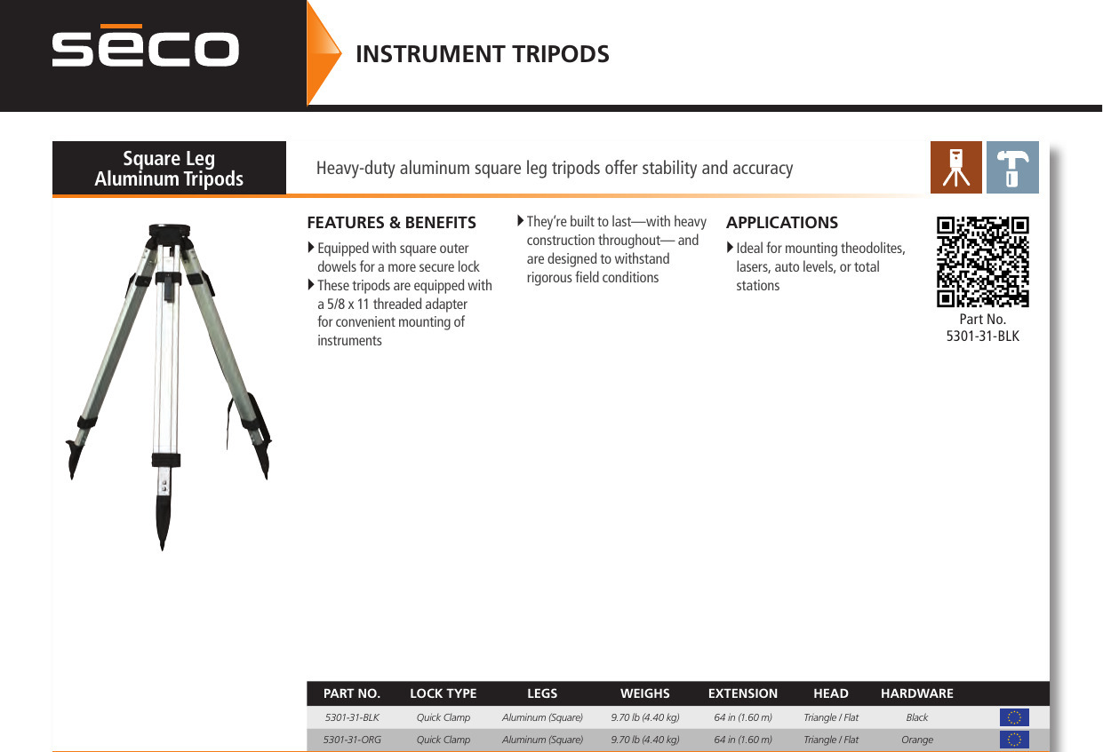 Trípode Aluminio SECO 5301-31-BLK (Para Estación, Teodolito)