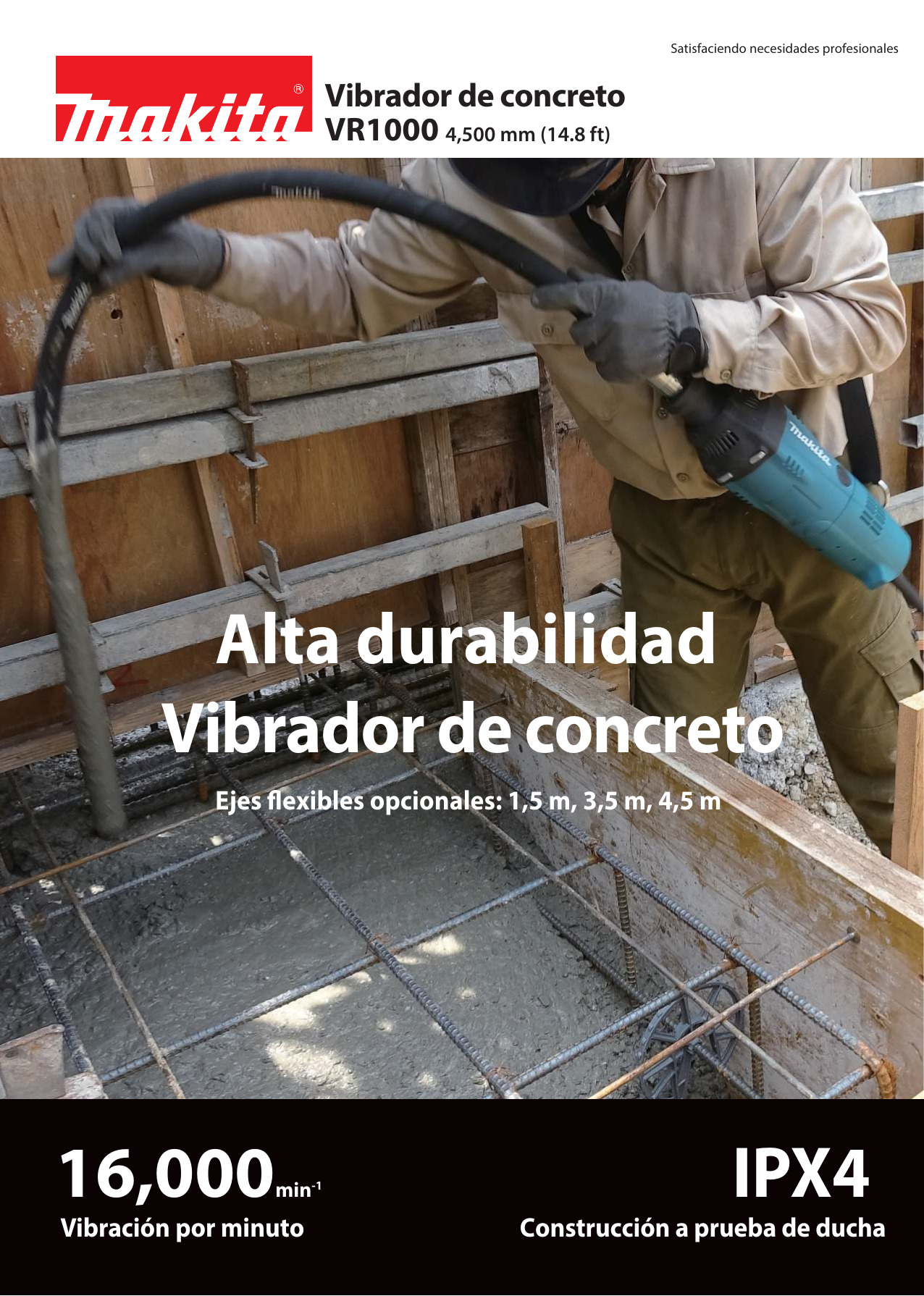 MAKITA Vibradora de Concreto VR1000 2000W 1F + manguera 1-3/8pulg x 4.5mtr