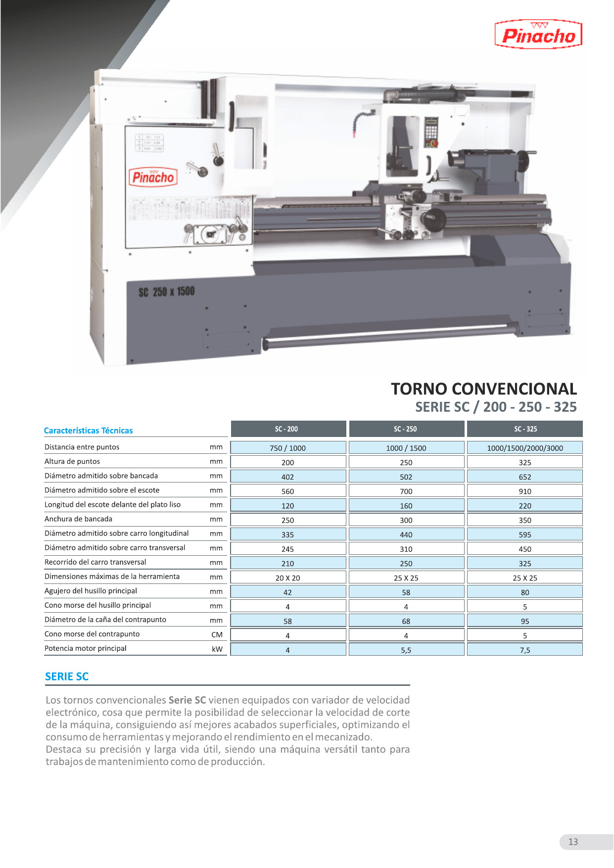 TORNO CONVENCIONAL – > MARCA: PINACHO -> MODELO: SC 325 1500 ; REALIZAMOS ENVIOS A TODO EL PERU PINACHO ENTREGA INMEDIATA