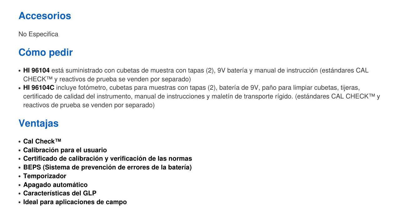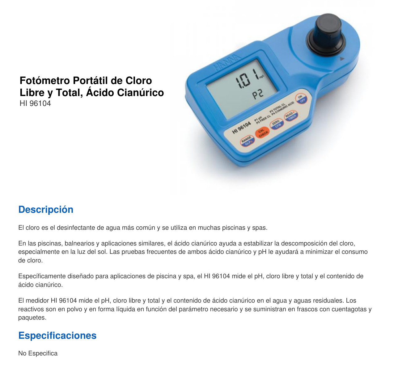 Especificaciones HI 96104C