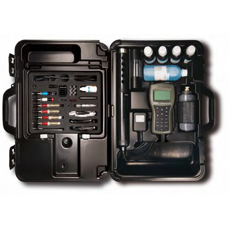 Impermeable – protección IP 67 equipo e IP 68 sonda -, mide y registra hasta 15 parámetros, entre ellos los principales parámetros químicos del agua, incluidos Nitratos, Amonio y Cloruros ; así como Turbidez conforme a ISO 7027.