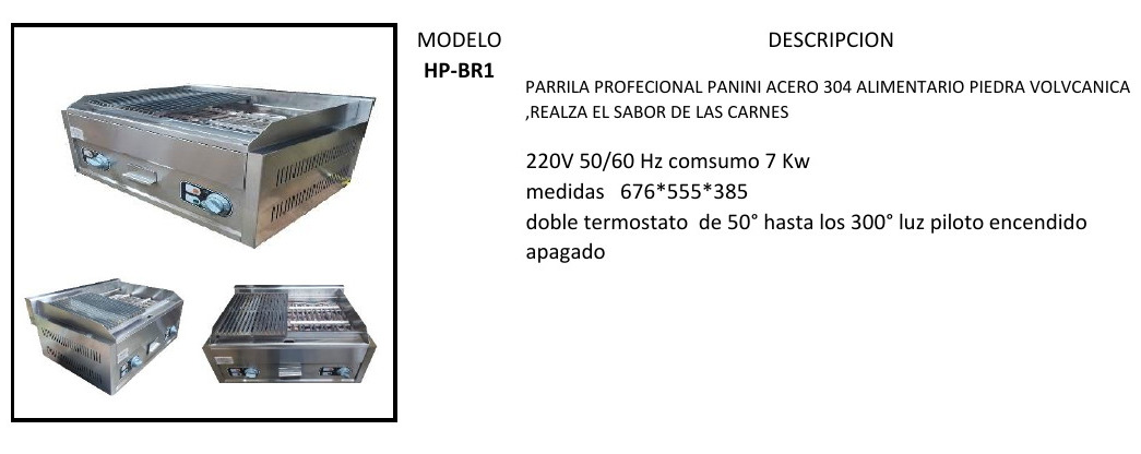 Parrilla profesional panini acero inox 304 alimentario con piedra volcánica, realza el sabor de las carnes.