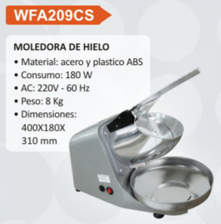 La Picadora de Hielo Raspadillera Maquina Eléctrica Trituradora en Escama, es una maquina muy potente y resistente para satisfacer la demanda de sus clientes, obteniendo una molienda tipo nieve de muy buena textura y de buena apariencia. Este producto tiene un diseño muy elegante, con buenos acabados y sobre todo muy fácil de usar y de limpiar. Protección de seguridad para evitar accidentes, no entra en funcionamiento hasta que la tapa impide la visibilidad y penetración de la mano dentro de la cuchilla. Ideal para pequeños negocios y carretillas ambulatorias y también para todo tipo de negocios formales. Pica el hielo dejándolo en punto de nieve ideal para raspados. Con plato recipiente para evitar deshielo en la mesa impidiendo mojar la máquina. Usted podrá elaborar 3 vasos de raspadilla standard en un tiempo promedio de 10 segundos. El costo de elaboración es mínimo ya que al usar jarabes de frutas se minimizan los gastos de inversión y se obtiene una ganancia del 300 %. Permite utilizar el hielo en bloques pequeños y también cubitos de agua de diversos tamaños.