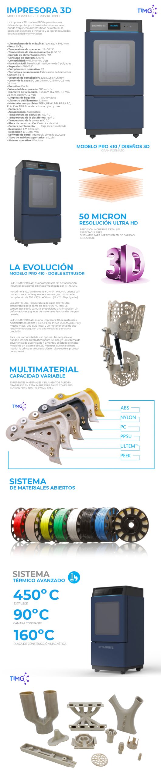 La impresora 3D modelo PRO 410 le permite crear diferentes prototipos de diseños tridimensionales puede trabajar con distintos tipos de material, la operaciòn es simple e instutiva y se logran resultados de alta calidad y terminaciòn. 410