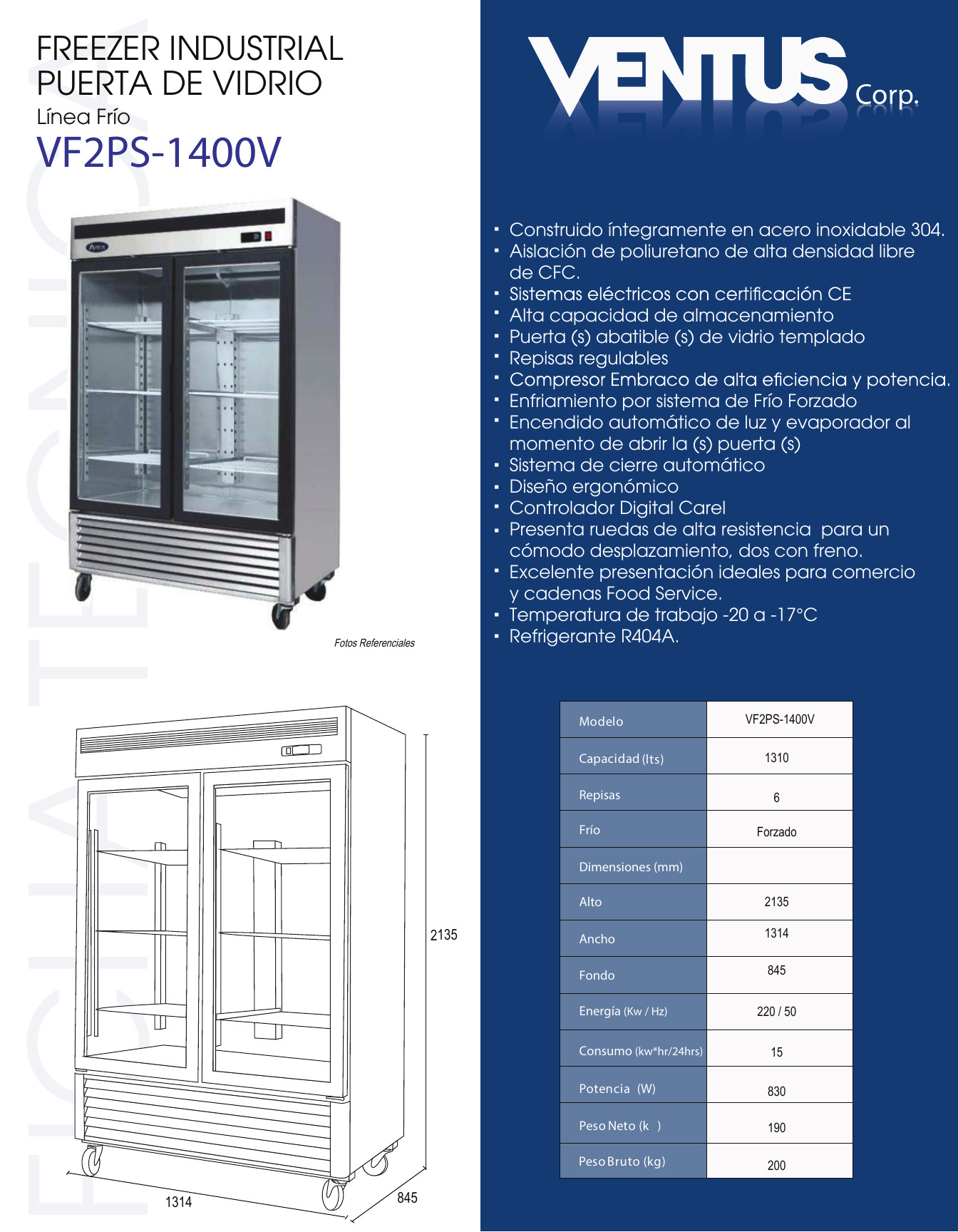 FREEZER INDUSTRIAL – > MARCA: VENTUS -> MODELO: VF2PS-1400V ; REALIZAMOS ENVIOS A TODO EL PERU VENTUS ENTREGA INMEDIATA