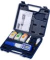 MULTIPARAMETRO resistente al agua, sirve para medir el pH, la conductividad, sólidos totales disueltos, la salinidad y a temperatura. Al conectar el pH-metro se llevará a cabo una auto revisión para poder asegurar la precisión en la medición. El pH-metro está equipado con un indicador de estabilidad. Los factores EC / TDS y de compensación de temperatura pueden ser adaptados a las condiciones ambientales. En la calibración del valor del pH se podrán elegir diferentes limitaciones estándar. El pH-metro Combo posee un soporte de electrodos en el que se encuentra el electrodo para el pH y un electrodo para la conductibilidad y la salinidad que se pueden intercambiar fácilmente.