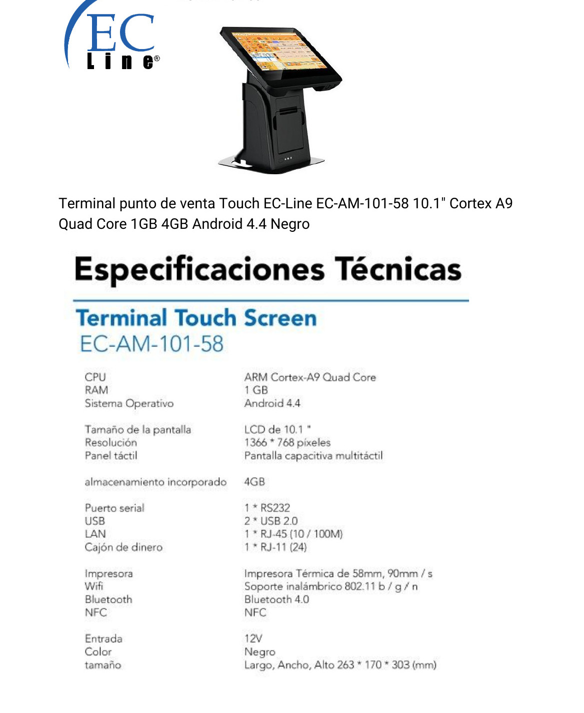 TERMINAL DE PUNTO DE VENTA – > MARCA: EC LINE -> MODELO: EC-AM-101 ; REALIZAMOS ENVIOS A TODO EL PERU EC LINE ENTREGA INMEDIATA