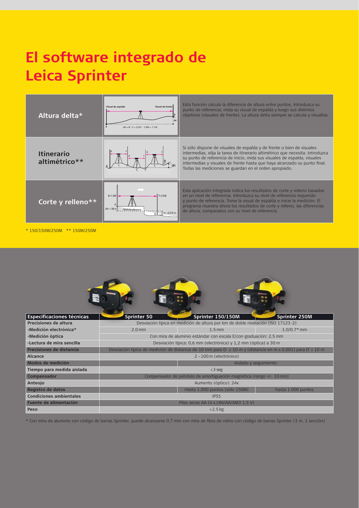 Nivelación doble: 1.5mm con mira de aluminio Leica Sprinter