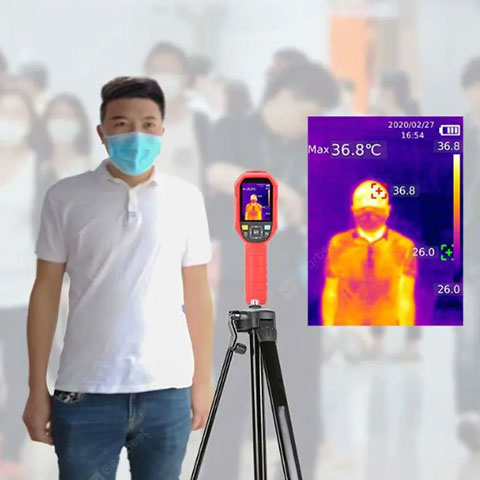 Cámara portátil infrarroja para control termográfico de personas, de alta velocidad de medición y sensibilidad de temperatura , visualización de variaciones de temperatura configurable. Paleta de opciones de color en la visualización de imagen térmica, resolución de 19200px (160 x 120), puede tomar y guardar imágenes y ser descargados vía USB en PC. Duración de batería en uso hasta 6 horas y rápida carga en sólo 4 horas. Incluye accesorios y agujero de soporte para montaje de trípode en su base. Incluye software para análisis de imágenes en PC.