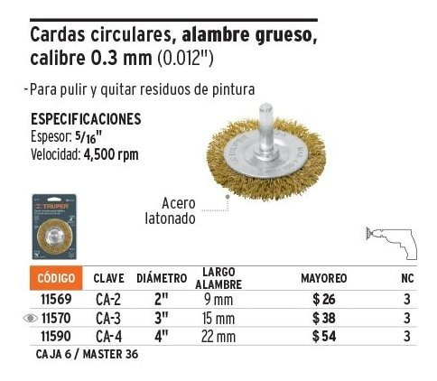 Empaque: Blisteritem: tru – ESCOBILLA COPA | ESCOBILLA CON VASTAGO | ESCOBILLA PARA USO CON TALADRO ELÉCTRICOS |