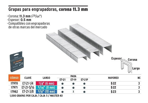 – > MARCA: TRUPER -> MODELO: GRAPA 1/4″ ; REALIZAMOS ENVIOS A TODO EL PERU TRUPER ENTREGA INMEDIATA