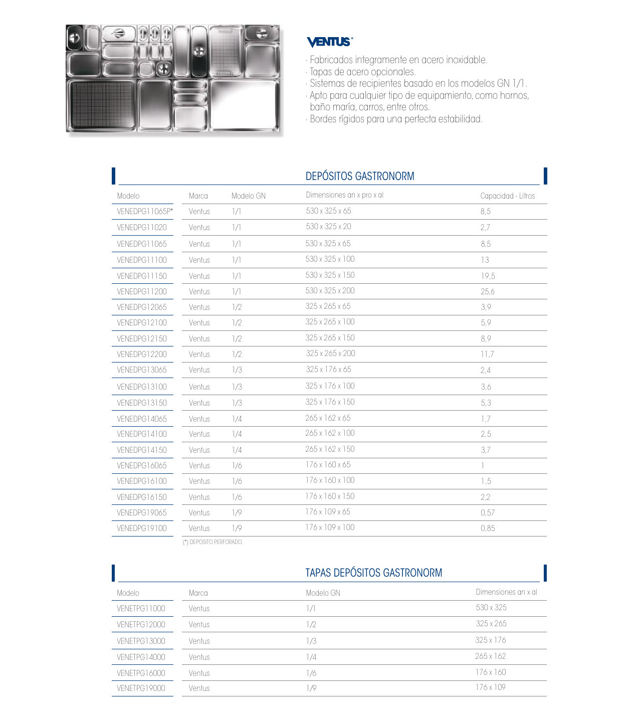 DEPOSITO GASTRONORM MARCA: VENTUS MODELO:
