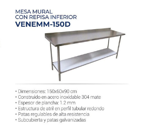 Meson de trabajo mural c/repisa inferior 150cm VENEMM-150D
