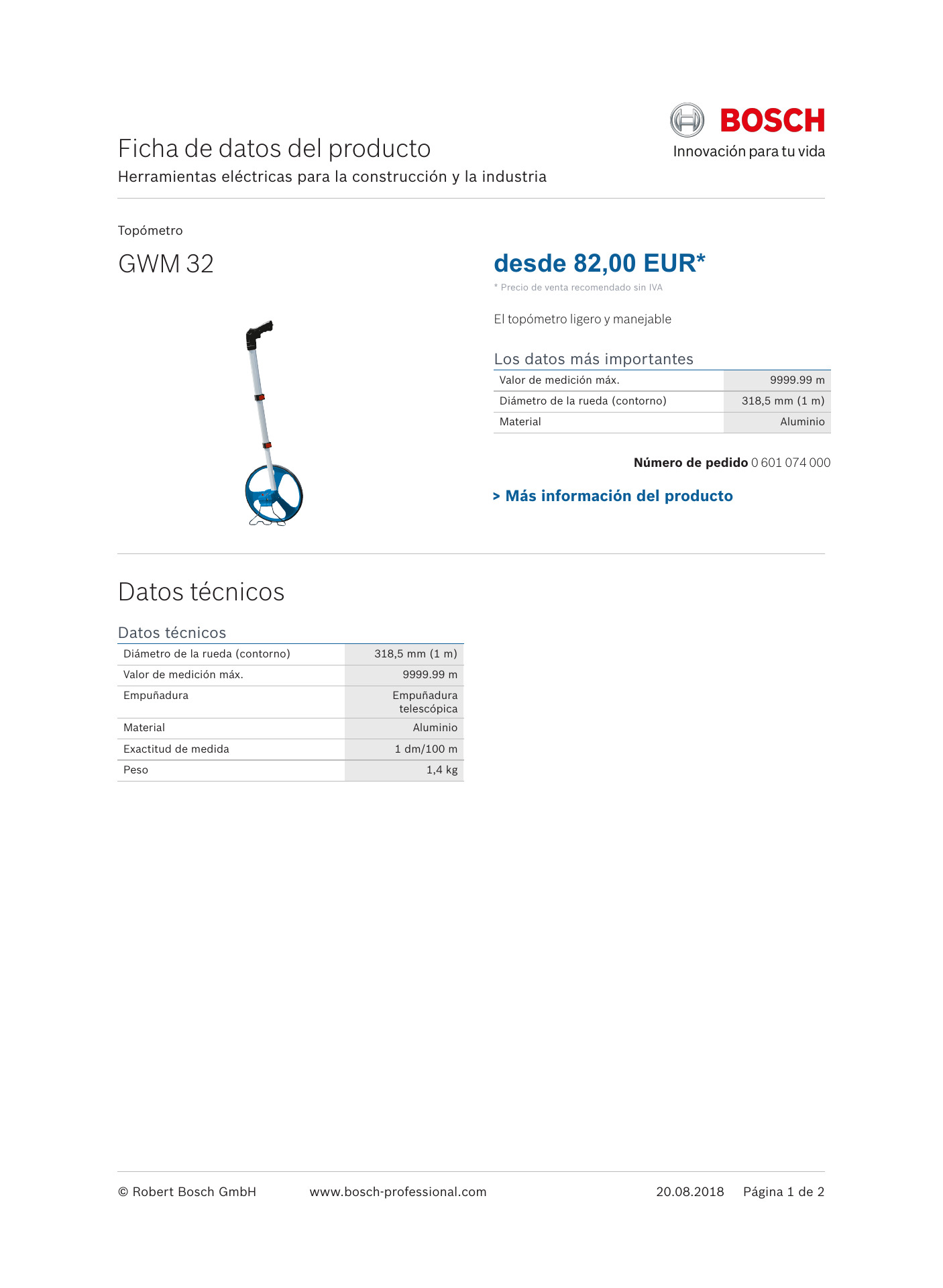 GWM32Diámetro de la rueda (circunferencia) 318.5 mm (1 m)