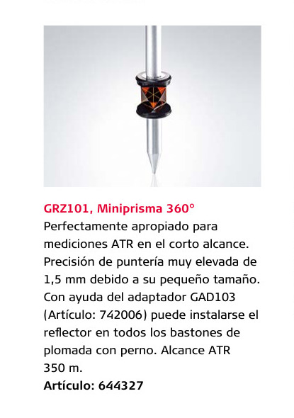 Características del mini prisma de 360 grados Leica GRZ101