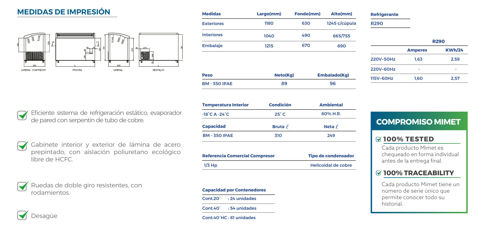 BM350IPA Temperatura Interior: -18º C a -24º C