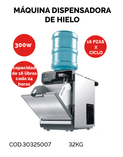 •Su diseño único utiliza una jarra de agua de 5 galones, estilo enfriador de agua, para suministrar hielo o agua fría.