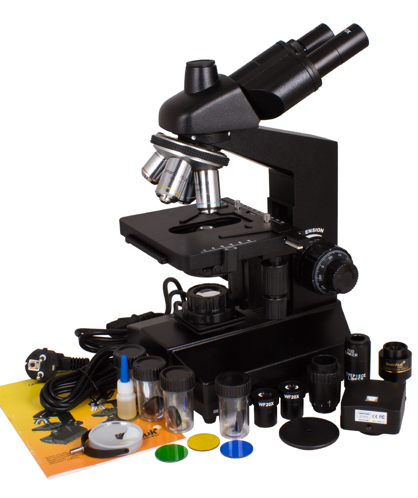 Levenhuk D870T produce aumentos de 40x a 2000x y viene con cuatro lentes objetivos: 4x, 10x, 40x y 100x, así como pares de oculares WF10x y WF20x con FOV amplio.