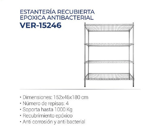 · Soporta hasta 1000Kg.item: ven – ESTANTERIA EPOXICA | LINEA NEUTRO | ESTANTERIA EPOXICA ANTIBACTERIAL RECUBIERTA | ESTANTERIA EPOXICA DE 4 REPISAS