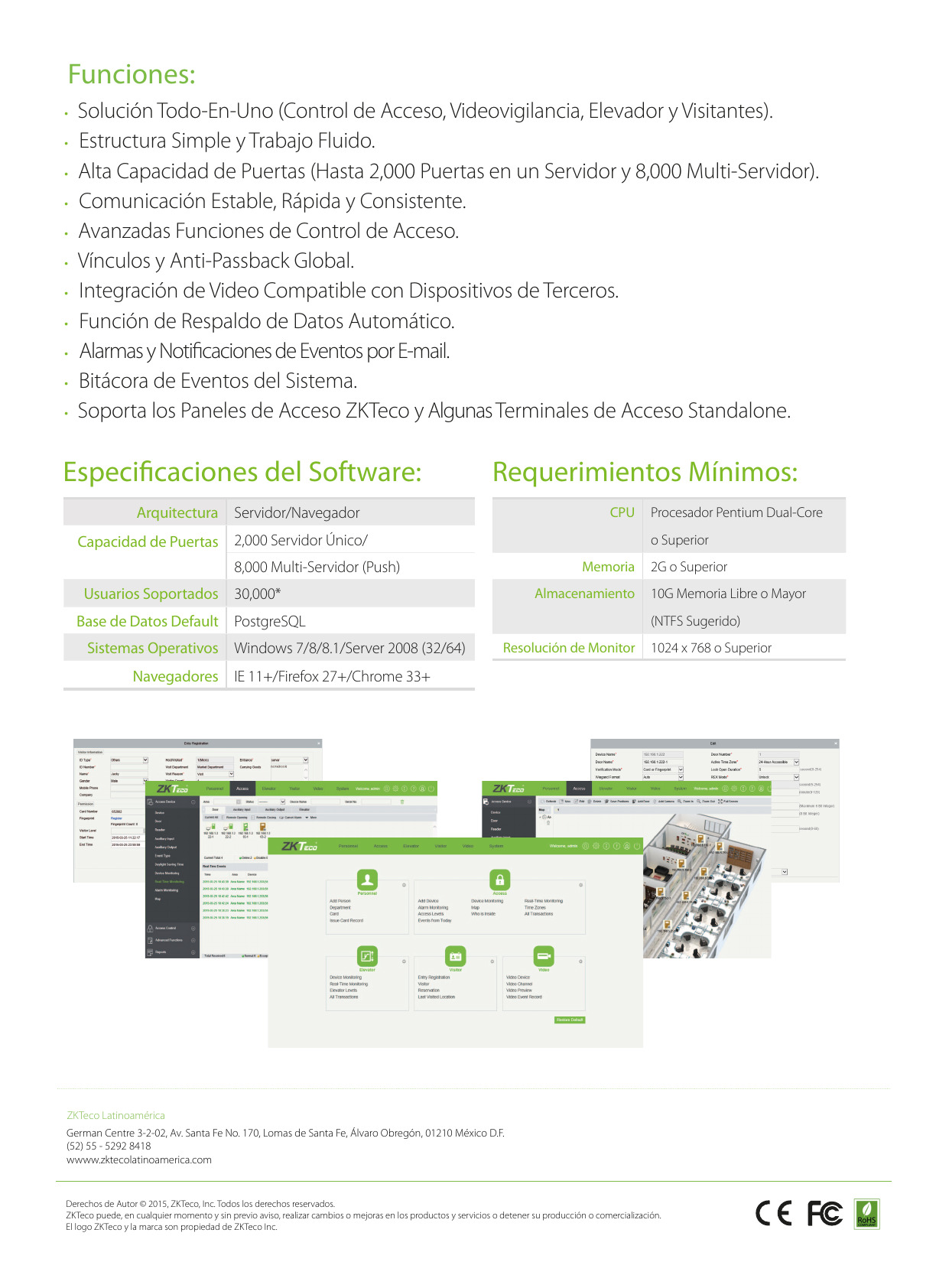 SOFTWARE SOLUCION PARA ASCENSORES MARCA: ZKTECO MODELO: